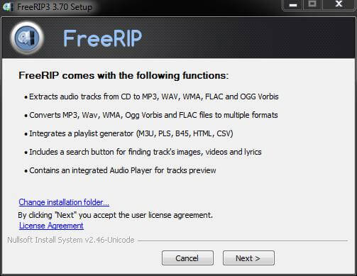 The above image is what you will see when you begin your FreeRIP installation. Please take note of the opportunity here to choose an installation directory.