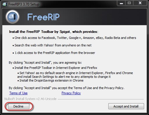 Many of these ‘Sneaky Petes’ are generally harmless, however, to simply avoid clutter and to stay in control of your computer I always strongly suggest to not install anything but the program itself. If you agree with me, when this screen presents itself, click the Decline Button. As always, the choice is yours.