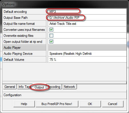 - Default encoding – Set it to the one you want as your default option. I like MP3 for use on my PC.