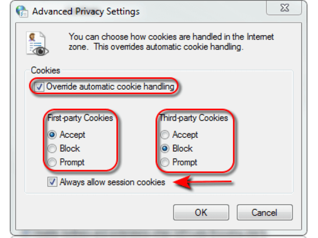 By doing the above IE will allow third-party cookies for the current session only. In other words, it will erase these cookies when you close your browser. I don’t know of another browser that allows this flexibility. It’s a shame really as this is the best native browser solution in my opinion; at least it is for the users of these programs.