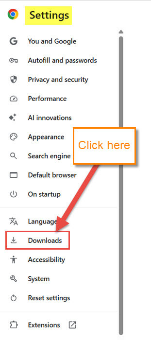 Step 3: Once on the Settings screen, look to the left side menu. Look for the option called Downloads. Click on it.