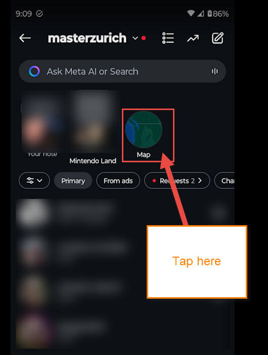 Step 3: On the Message screen, you should now see the Map icon at the top. If you do not see this, then you have not gotten the update yet. Tap on the Map.