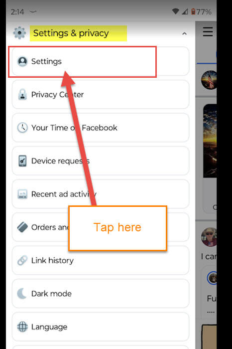 Step 3: After that, a side menu will appear. Look for Settings and privacy, then tap it.