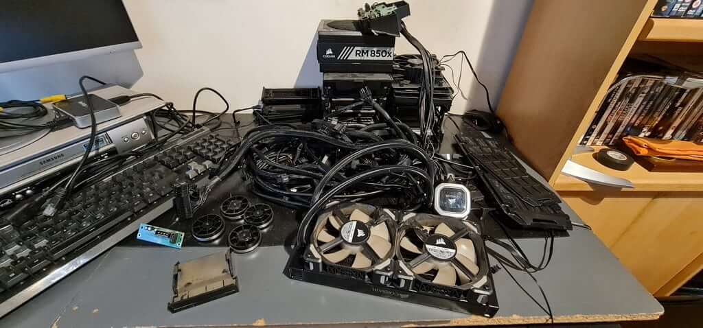 Reassembly took nearly eight hours, and frankly, I was relieved when I finally hit that power button. As I’ve added to the computer over the years, it’s become a mess of cables – RGB, SATA, power, and fan cables, extensions – not to mention 240mm water cooling.