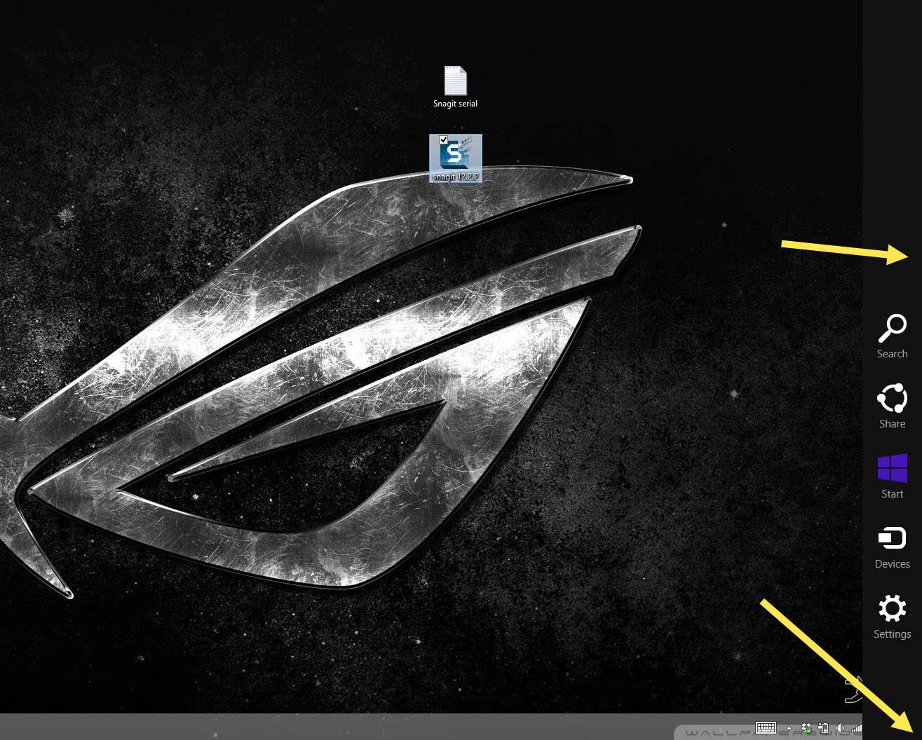 First thing you want to do is find “Settings.” This can be easily found on the desktop or the app screen just by moving your mouse to the bottom right corner of your screen or, if you have a touch screen, just swipe from the right side of the screen. This should bring out the hidden side bar (Charms bar).