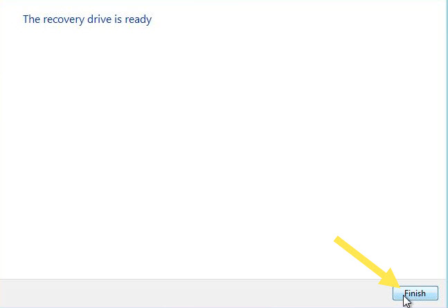 - The last screen will pop up and say “The recovery drive is ready”, now just click finished.