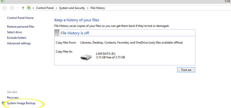 Creating a System Image Backup in Windows 8.1 or Windows 7 Pro (from this point on, both Window versions continue the same way).