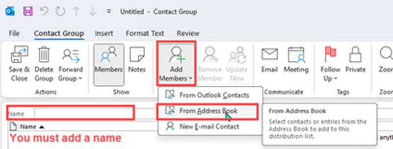 5. In the drop-down menu choose where the members are located. Use Address Book.
