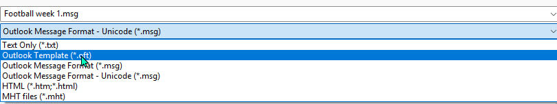 When finished with the email, choose File > Save As. In the “file type” ensure Outlook Template (*.oft) is selected.file-type-outlook-template Finally, make sure to give the saved file a name. That is all there is to it. You now have an Outlook template you can open without repeating any steps.