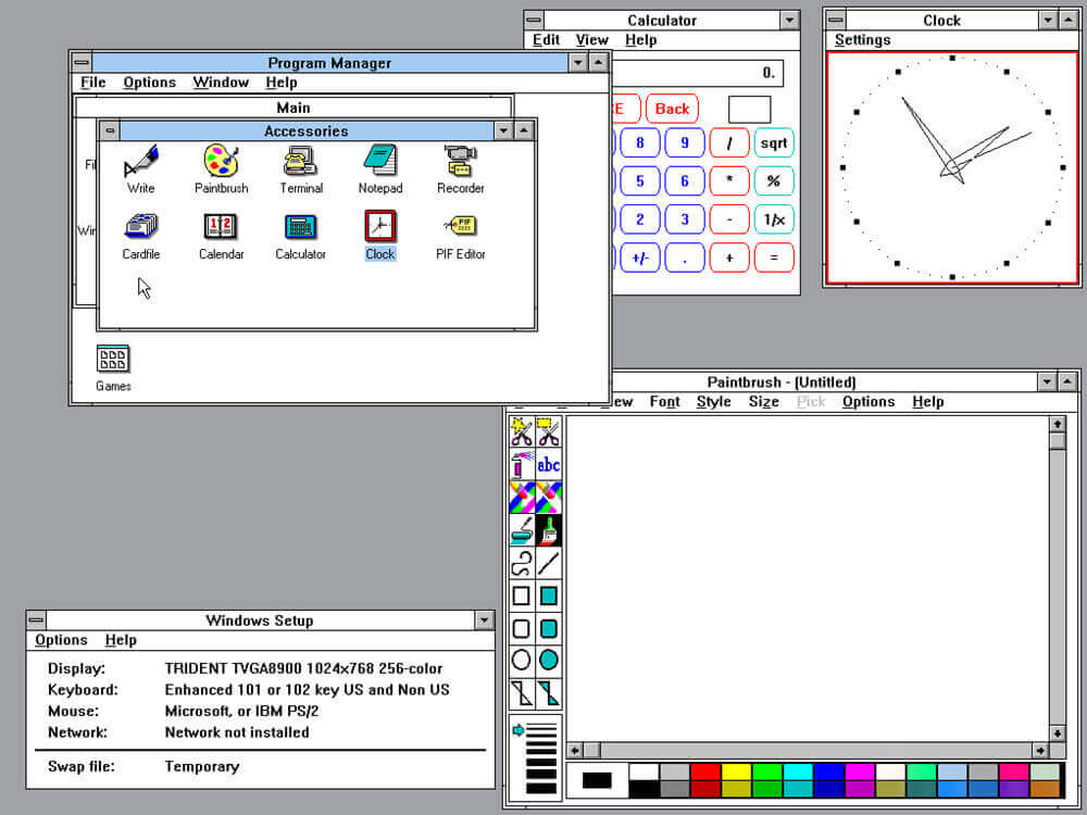 The Windows Operating System derived its name from the rectangular “windows” that were used in the early versions of the OS and still is a very big part of how we use the system today. Using Windows to view software or applications allowed users to keep multiple applications running and switch windows when needed. One of the earlier views of multiple windows.