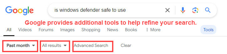 Make sure you are getting the best answers to your queries and specify a time.  Using the date function can keep your answers current. Google’s tools include an impressive Advanced Searchadvanced-search should you ever need to narrow down or enhance your search results.