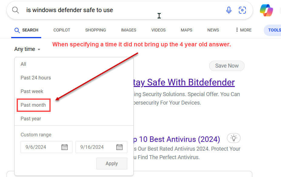 For example:  If your search is: “Is Windows Defender safe to use” you may get a surprising number of different answers.setting-a-time