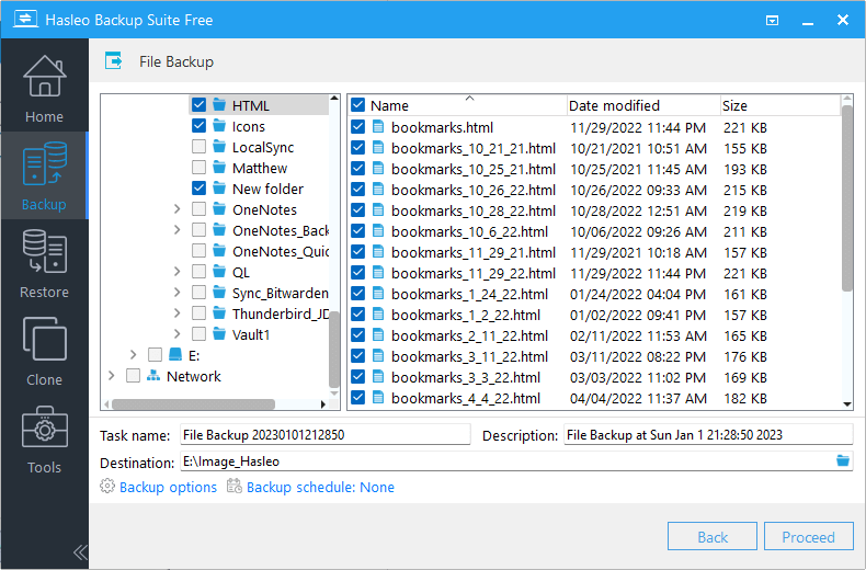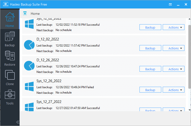The Hasleo user interface has a very simple design. The main window of Hasleo Backup Suite contains two areas: the navigation bar is a vertical column on the left side and the operation area is on the right side. The five main features are listed in the navigation bar (Home, Backup, Restore, Clone, and Tools). It is a very similar user interface to the Aomei and EaseUS user interfaces. Any user coming from either suite will adjust quickly to the Hasleo interface.