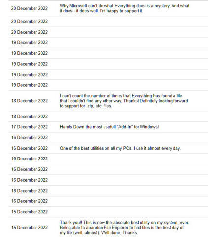 To say I was staggered by the speed of Everything is an understatement. It does exactly what it says on the can and what’s more, it’s completely free, being freeware. I can only echo the comments made on the author’s website and would recommend this utility without reservation.