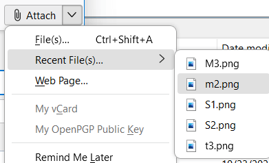 - File Attachments. When composing a message and attaching files to it, Betterbird allows the option to choose from the last five recently accessed files. Note: I looked but did not see a method of changing this to a different number