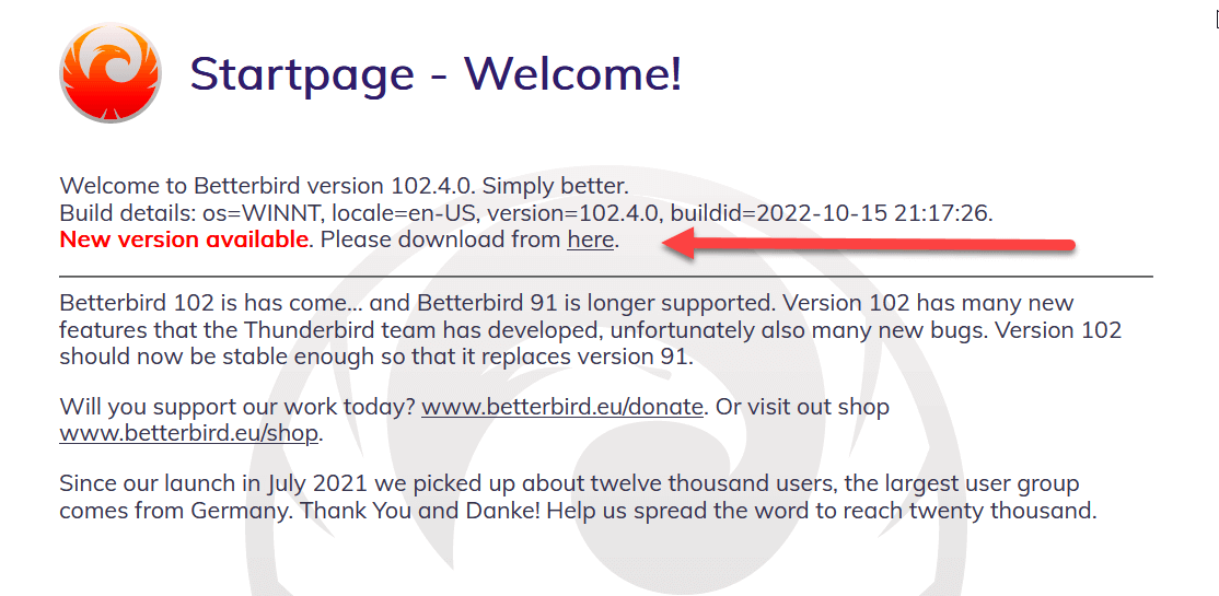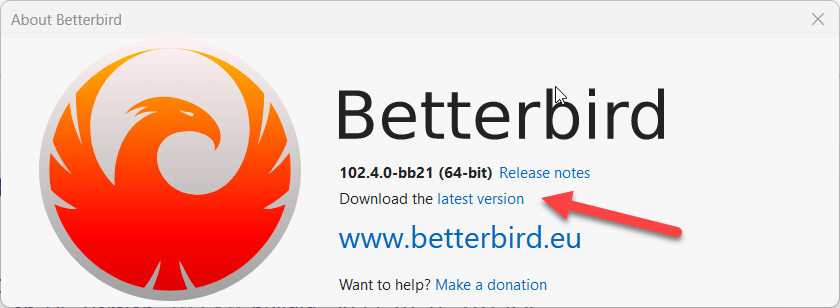 – dans à propos de Betterbird: il manque le lancement possible de la dernière mise à jour
