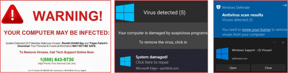For some reason, most of these “push notifications” or fake warnings have McAfee antivirus ads, but not all. Most of the pop-ups that get past my clients are the ones warning about Windows Defender, perhaps because they know it is already on their machine and think it is a genuine warning.