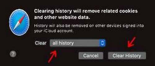 In the box that opens near the word Clear, click on all history and then click on Clear History.