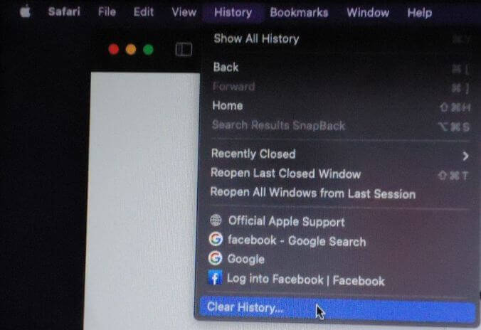 Now with Safari open again, even if the ad is still present, go to History across the top menu and click on it, in the menu that drops down, click on Clear History…