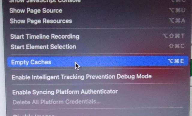 You can close that out and go to the top menu and you should see the Develop option. Click on it and find Empty Caches.