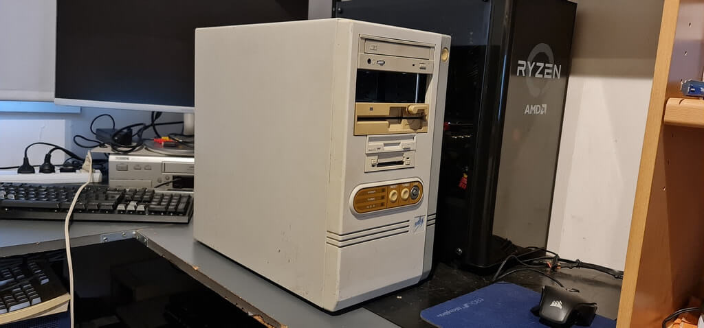 PC cases with tempered glass side panels are all the rage today. I bought this one in Spain back in 2003, with a Perspex panel, and built a Pentium 4 system on an Asus motherboard with a massive 2GB of RAM, a DVD drive, a 3DFX video card, and a 40GB HDD. It’s seen numerous configurations since then and currently houses an Asus FM1 motherboard with an AMD A6 3620 CPU and 16GB of RAM, which I was using for VHS to digital conversions. Since upgrading to a Ryzen 5600G in a brand new system, I’ve retired this one, and when the motherboard finally dies, I expect I’ll still use this case for more retro fun.