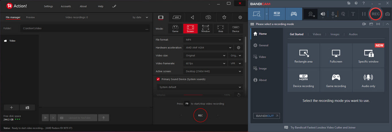 Action! And Bandicam Screen Recorders