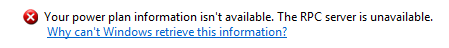 OK, I ran the Dism command and reran sfc /scannow and everthing was good. I finally found a link to the http://www.eightforums.com that had some info on this issue. All I had to to was download and run a Power Registry Key and this restored my Power Plan options. The RPC server was unavailable because their was no Power Plans to report. This is what I have when I run powercfg /L