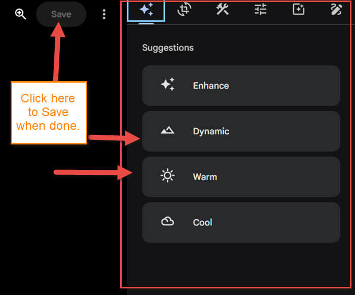 Have fun with this and see if you can make it even better. Once you are done, click on the Save option at the top of the image. The last one I wanted to mention from the previous step is Menu. Click it.