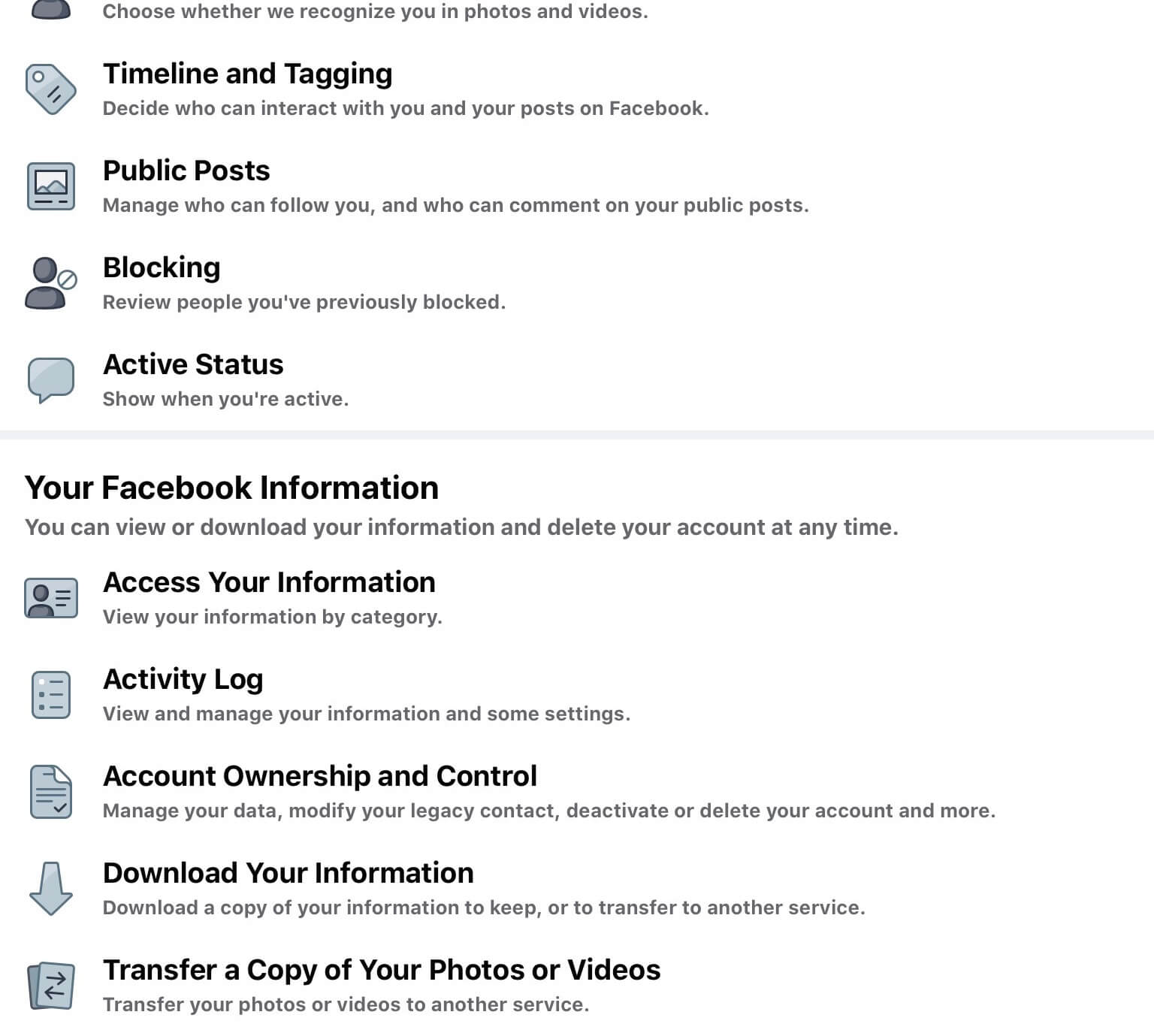 Step 1: Go to Facebook Settings and click on the Facebook Information which is in the left column.