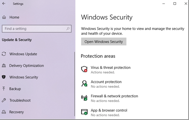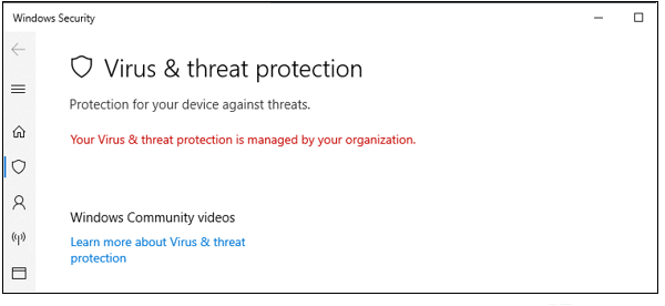 It shows that my Virus and threat protection is managed by my organization????