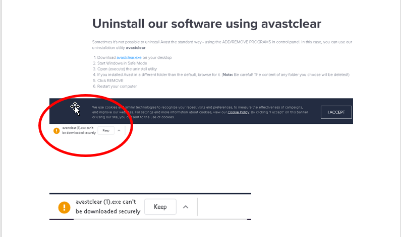 I just tried downloading avastclear.exe. It has downloaded, with the message that it cant be downloaded securely.
