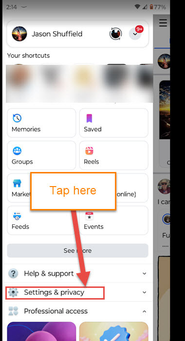Step 3: After that, a side menu will appear. Look for Settings and privacy, then tap it.