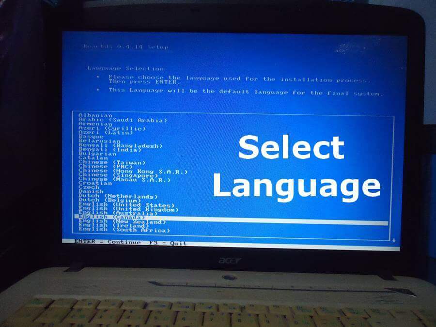 Select your language. Use the up/down arrows on your keyboard and use Enter to select your choice.