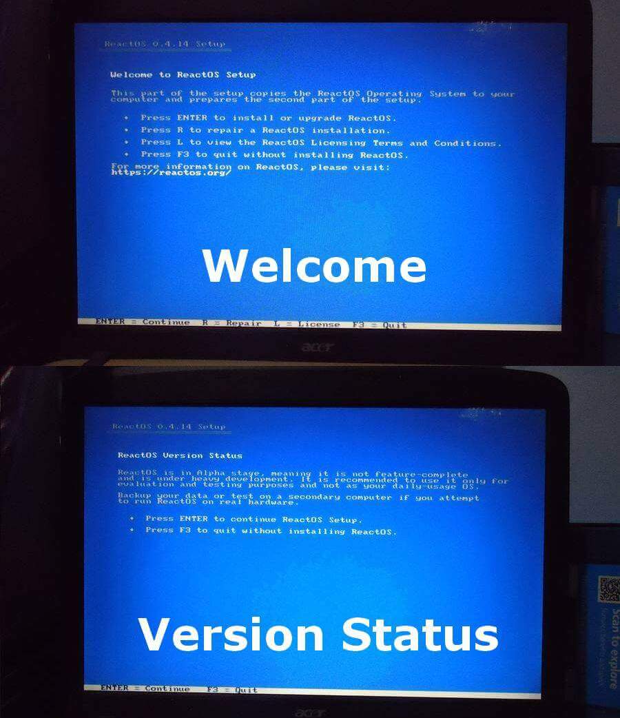 Then you’ll get a message about the “ReactOS Version Status”. Press Enter to continue.