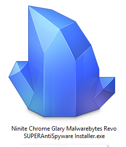 You check the ones you want– the ones I picked here are Chrome, Malwarebytes, SUPERAntiSpyware, Revo, and Glary. With the exception of CCleaner, they are the programs I use to maintain my computer. Ninite does not download any of the programs you have checked. It downloads a tiny installer program to your computer which contains a list of the programs you checked.